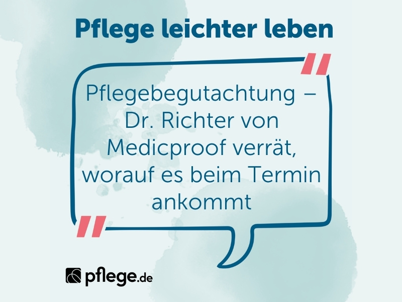 Für das Gutachten kommt ein Pflegegutachter an Ihre Wohnstätte, also zu Ihnen nach Hause oder auch ins Pflegeheim, falls Sie dort leben. Er macht sich ein Bild von der Pflegesituation, stellt Fragen und gibt auch erste Tipps für die Pflege oder empfiehlt Hilfsmittel.